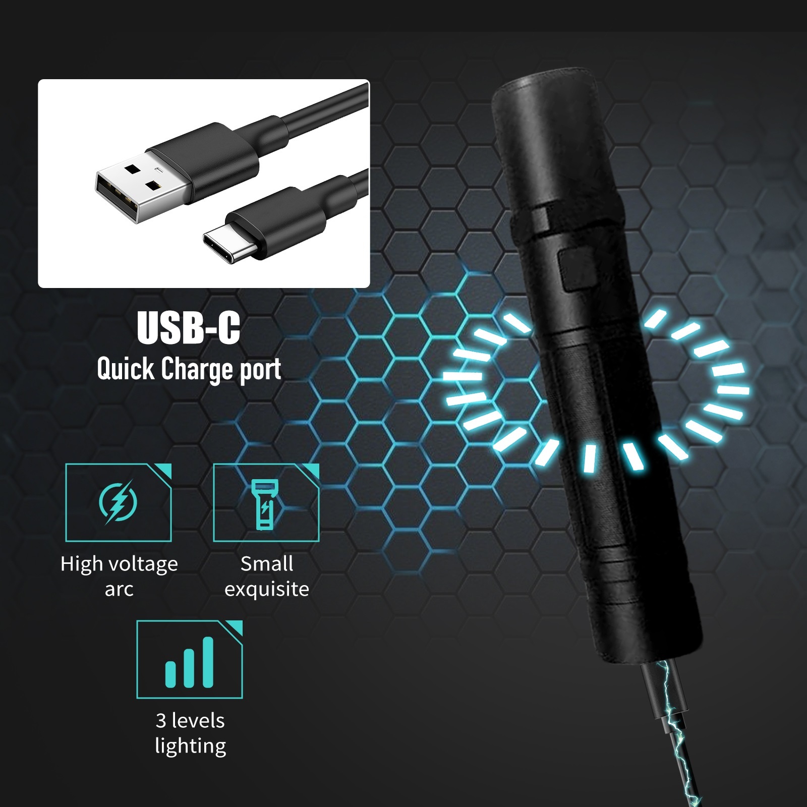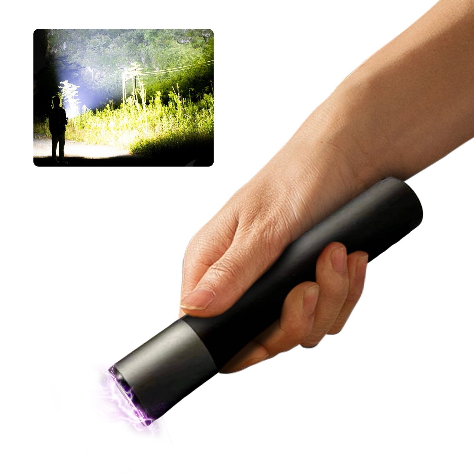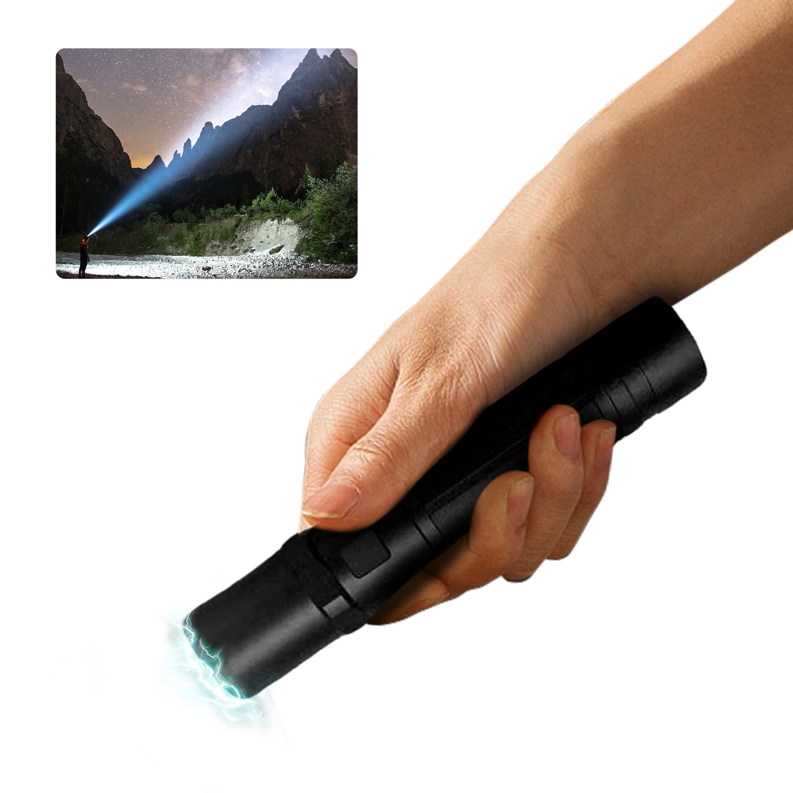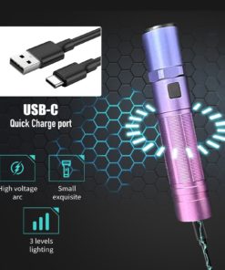 Rechargeable batteries: Rechargeable batteries eliminate the need for replacements, reducing waste and saving money. Our stun flashlight comes with a rechargeable battery, helping you save money and reduce waste. It includes USB charging cable, so you can power up anytime, anywhere