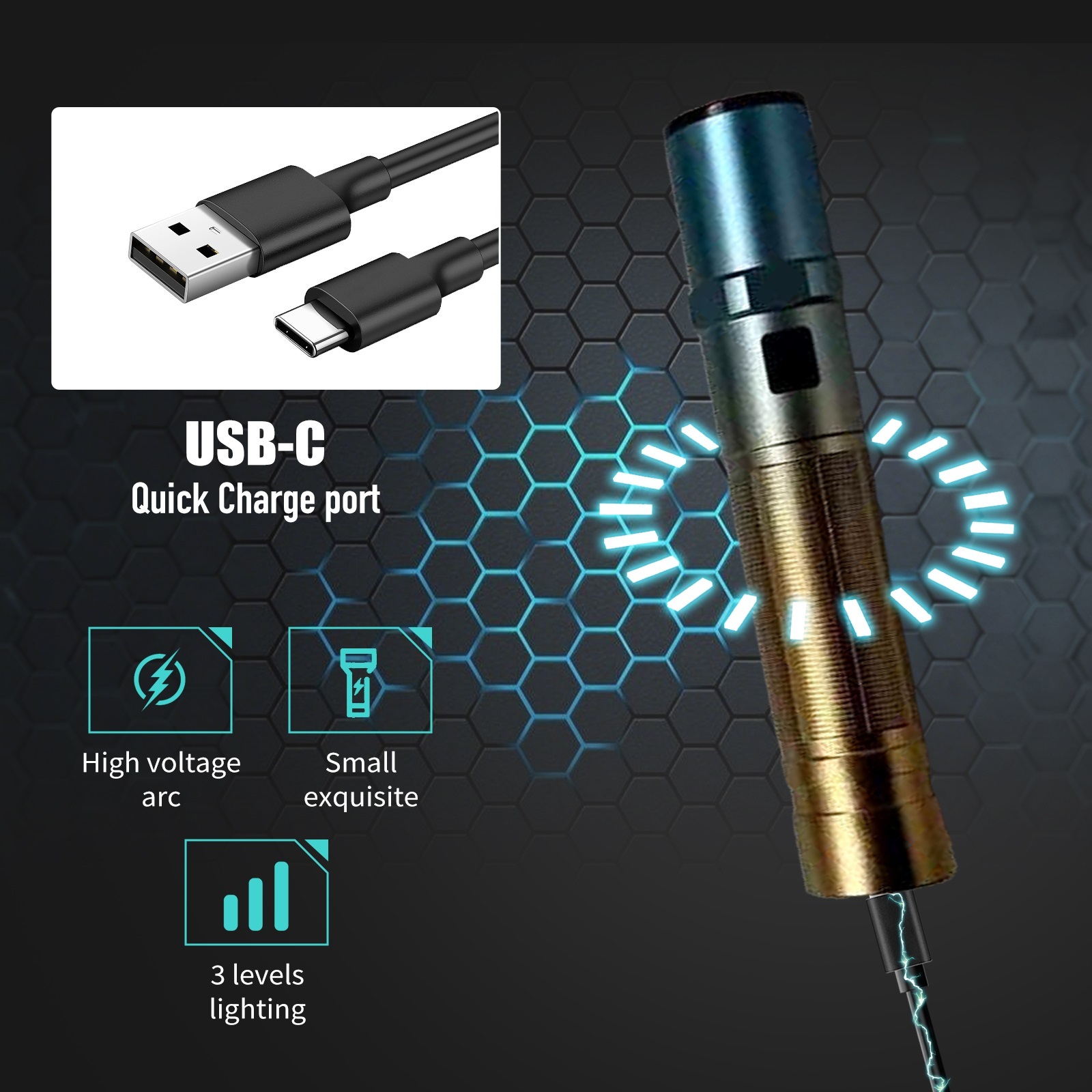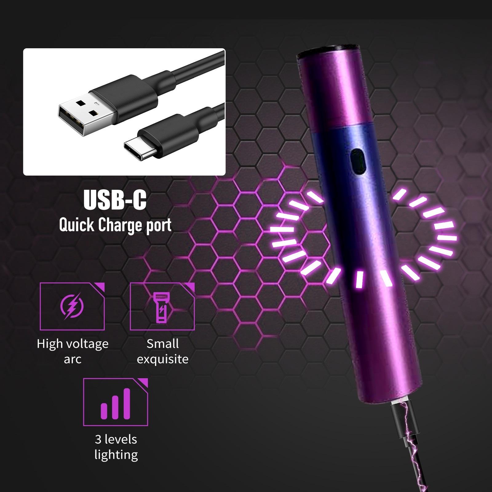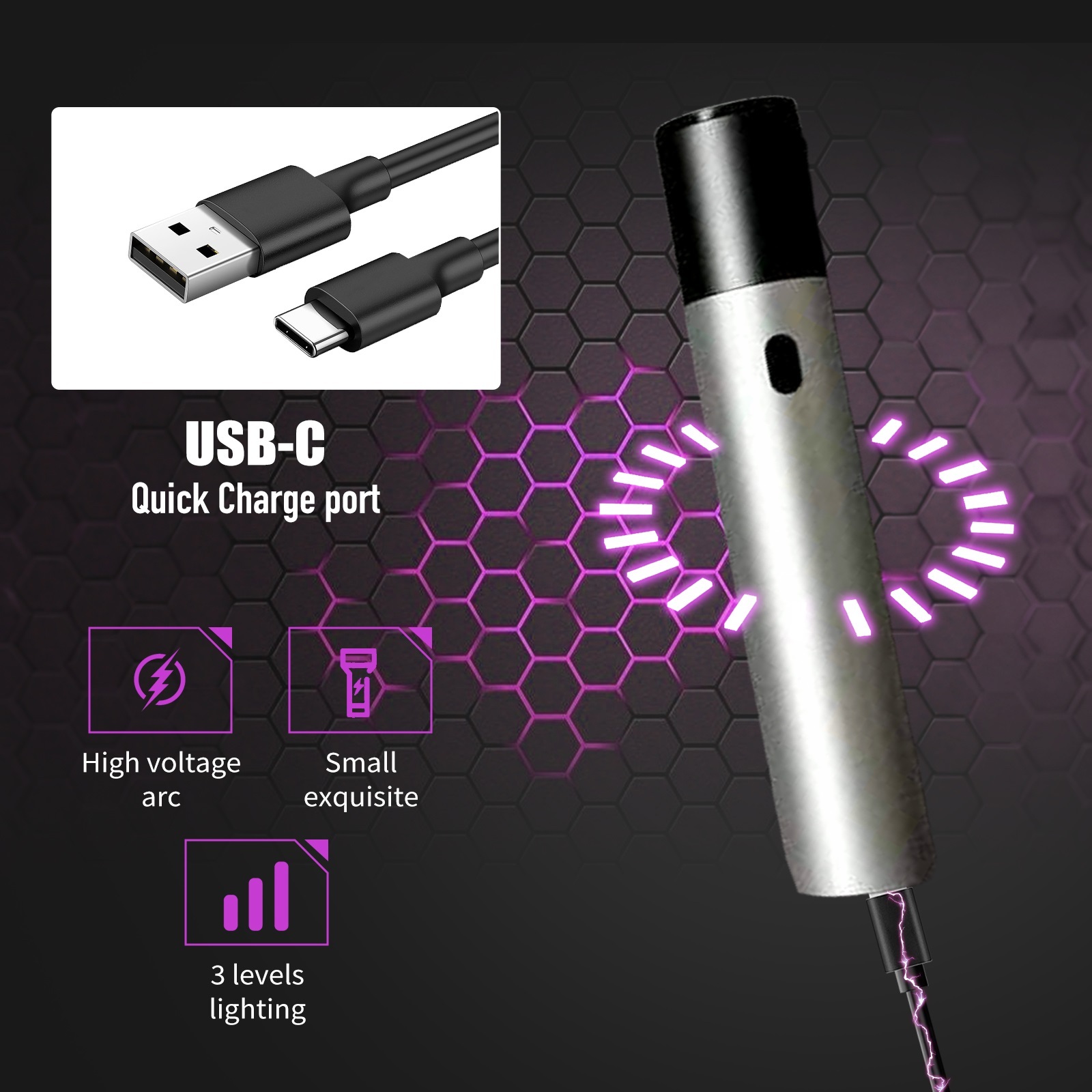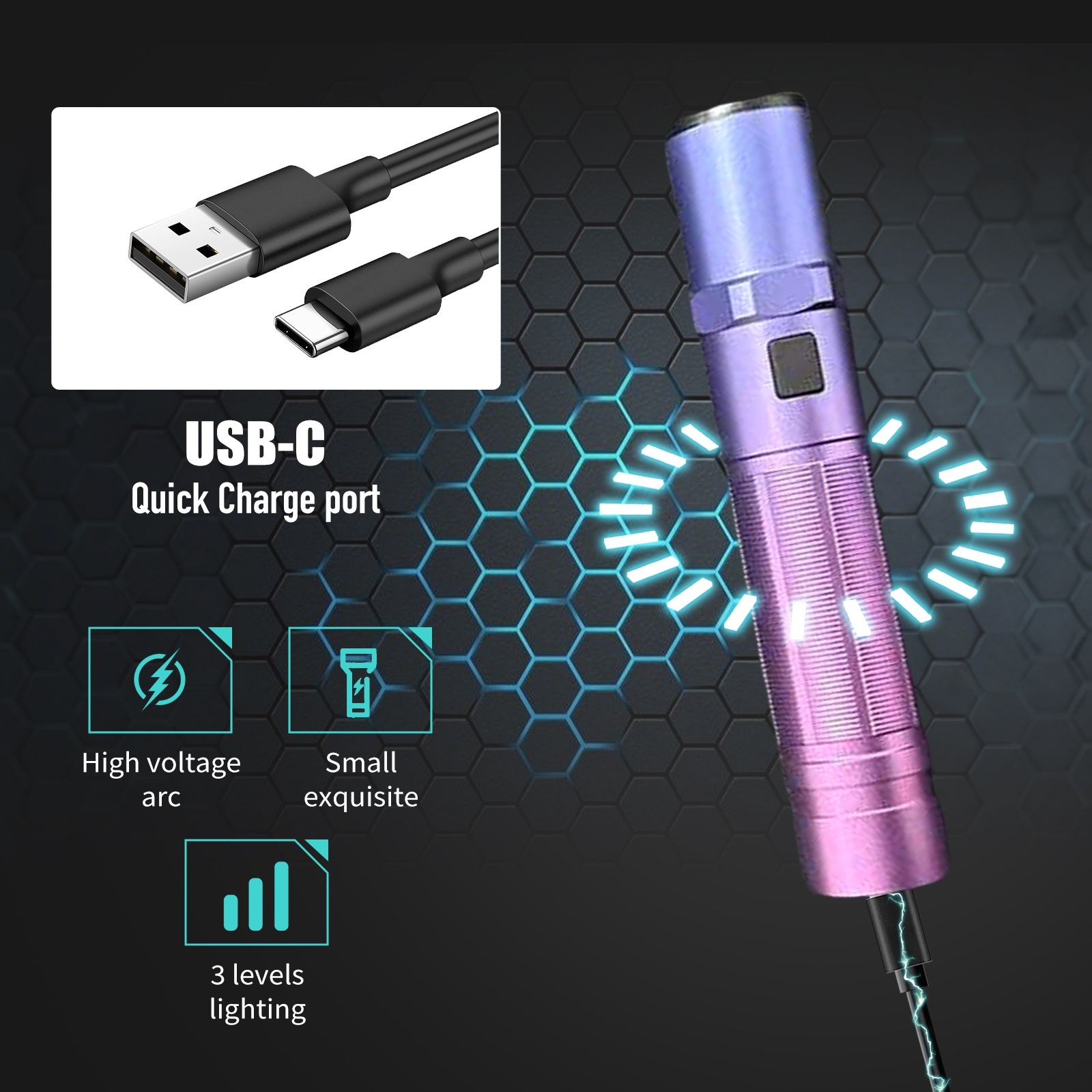 Rechargeable batteries: Rechargeable batteries eliminate the need for replacements, reducing waste and saving money. Our stun flashlight comes with a rechargeable battery, helping you save money and reduce waste. It includes USB charging cable, so you can power up anytime, anywhere