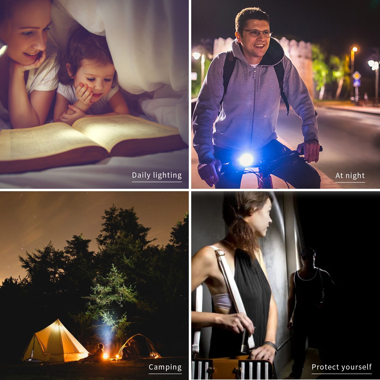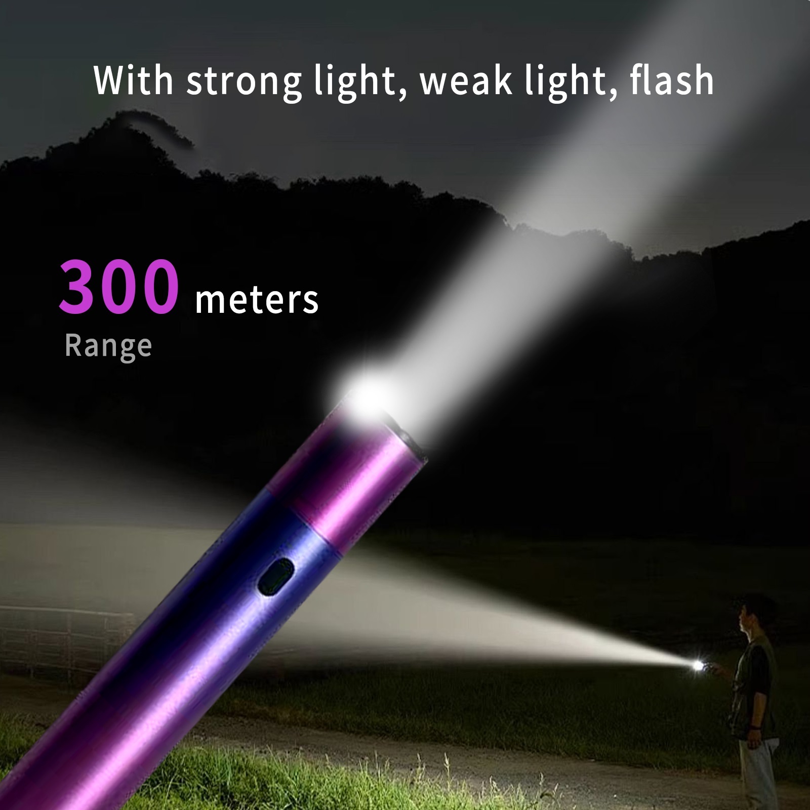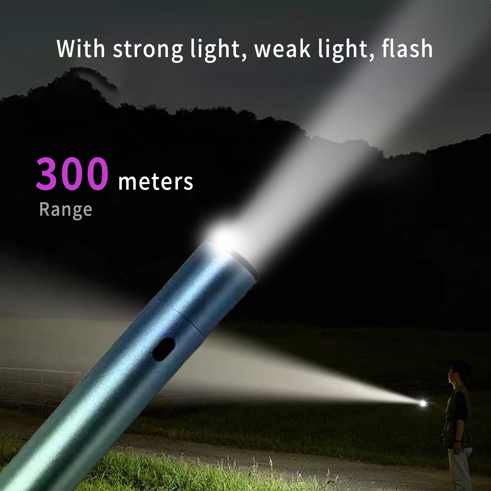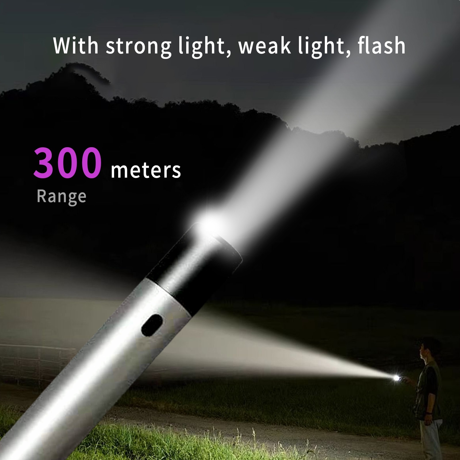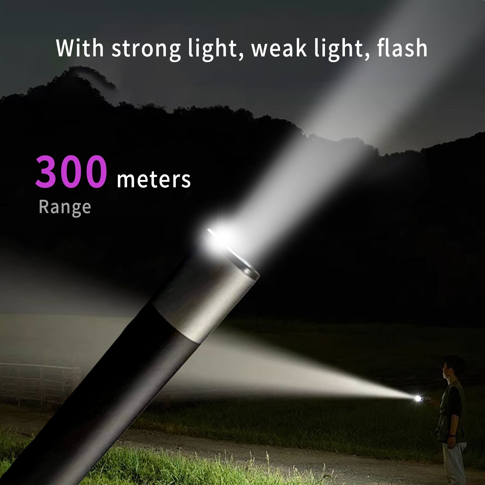 4-mode flashlight: Has 380 lumens LED flashlight with enhanced reflection system for optimal brightness. The use time of high, medium, low and flash modes is 3.5h, 48h, 120h and 8h respectively. Its maximum illumination distance is 200 meters. Designed to last more than 100,000 hours, the lamp beads provide you with reliable lighting when you need it most