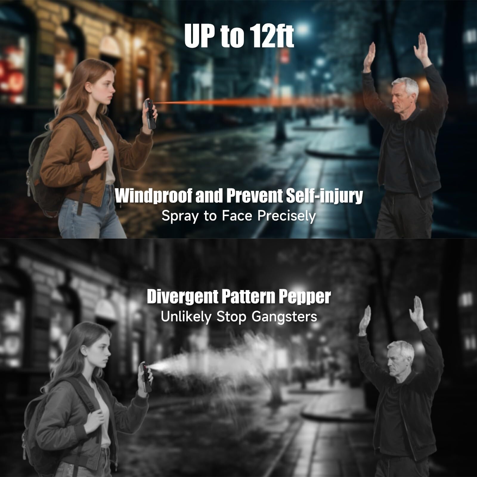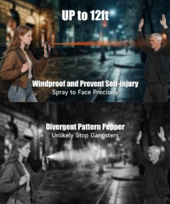 The included keychain pepper spray delivers quick-action protection from a distance, reaching up to 12 feet with a windproof stream. Easily attachable to bags, belts, or lanyards, it ensures you’re prepared in seconds.