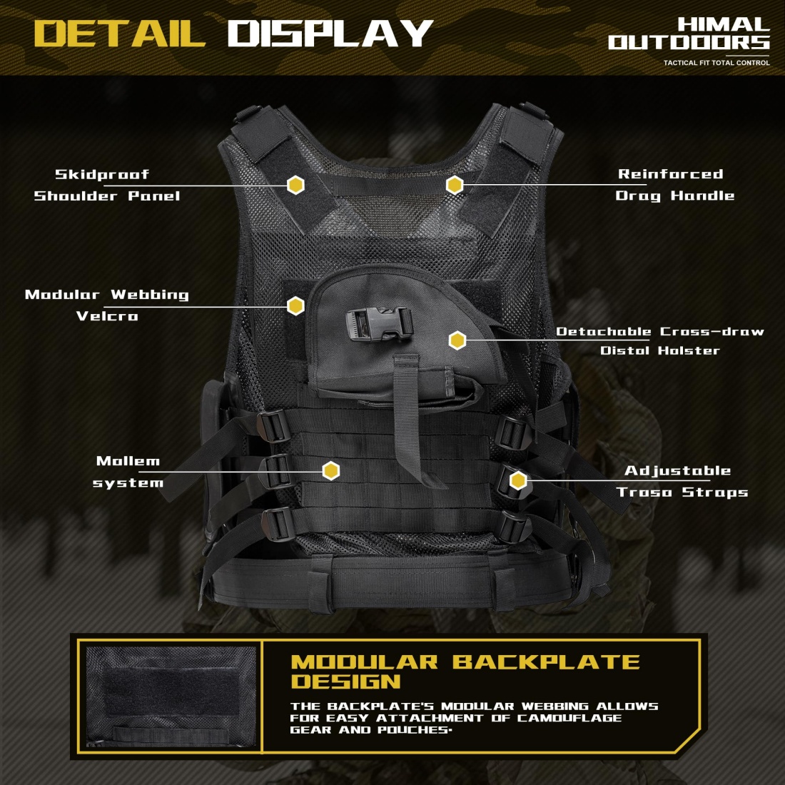 - Additional Other Accessories: The adopts the modular webbing structure, which is used to add camouflage equipment materials and mail bags. Two D-rings can help you hold carabiners or other equipment.